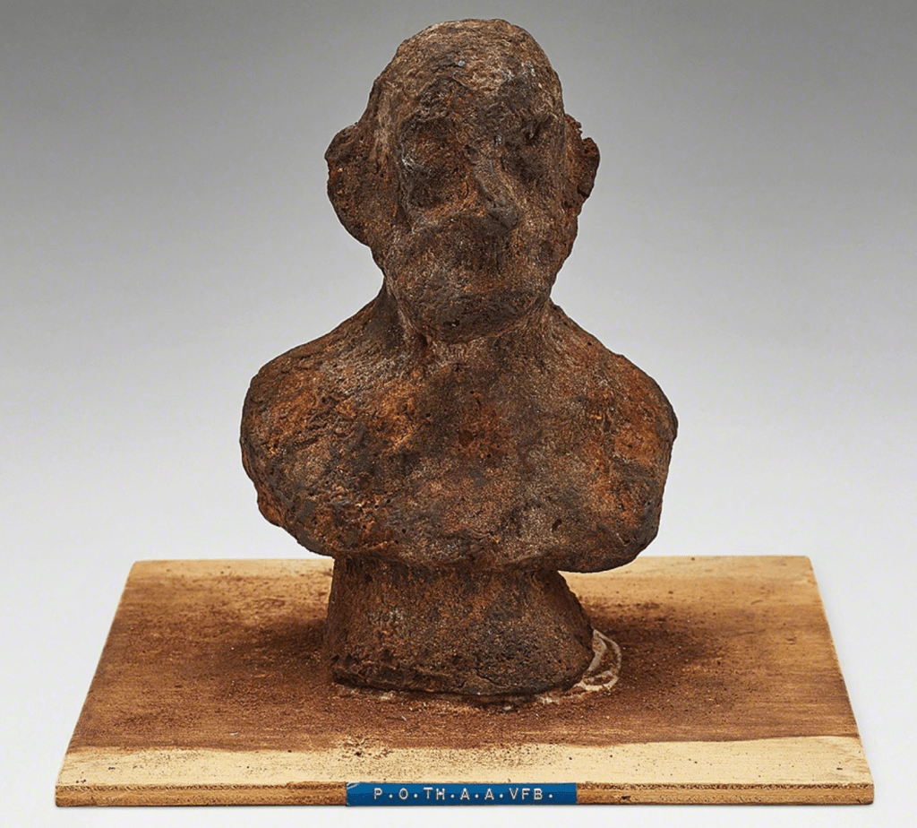 Dieter Roth: P.o.TH.A.A.VFB (Portrét umělce jako ptačího krmítka), 1968, multipl, čokoláda, ptačí zob.
