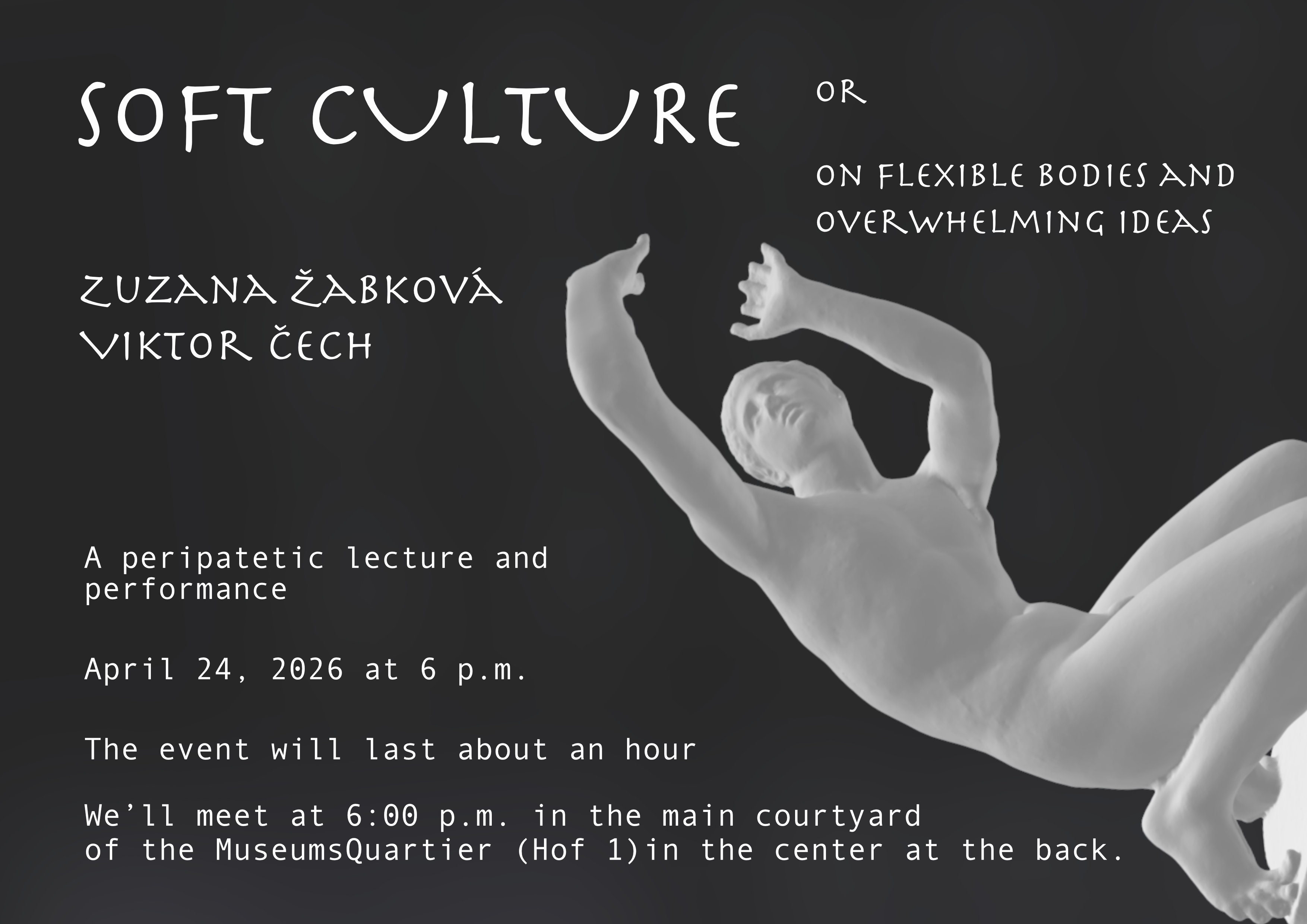 The performative lecture will take place in a creative dialogue between theorist Viktor Čech and artist and choreographer Zuzana Žabková.
